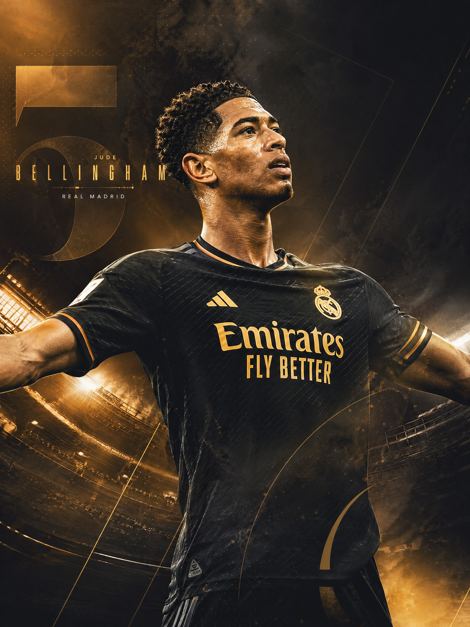 Create an artwork a design of Jude Bellingham advanced design level 3:2 Mac des...